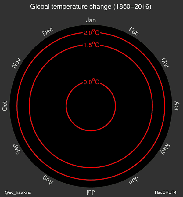 从上图中我们可以看到,目前温度的上升已经差不多有1度了,所以我们离1.5度或者2度的目标并没有多少的空间。