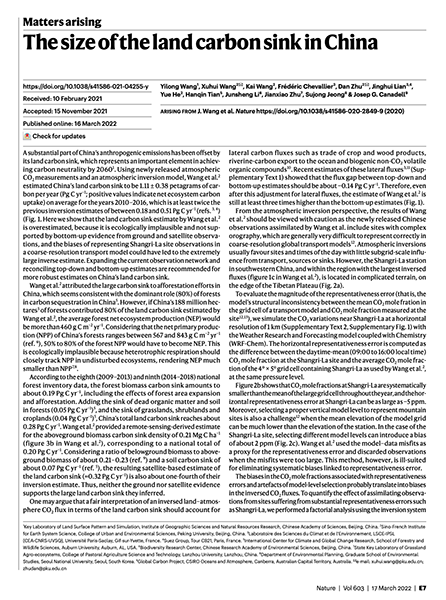 2022年3月16日伟德体育官网王旭辉研究员和朱丹研究员以“The size of the land carbon sink in China”为题发表在《自然》杂志。伟德体育官网中法地球系统模拟联合研究中心和中国科学院地理科学与资源研究所合作领导的研究团队重新核算了我国的陆地碳汇大小,修正了2020年发表于《自然》杂志的大气反演研究对我国陆地碳汇的过高估计,为我国大气反演陆地碳汇研究提供了新的思路,为评估陆地碳汇在实现我国碳中和目标中的作用提供了科学依据。汪宜龙副研究员为论文第一作者,王旭辉研究员和朱丹研究员为通讯作者。该研究得到了第二次青藏高原综合科学考察研究和国家自然科学基金等项目的资助。