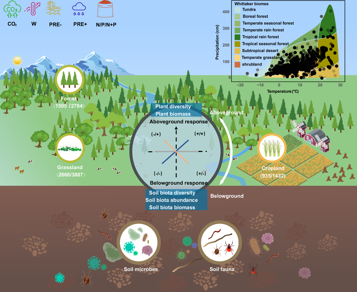伟德体育官网方精云院士团队发现陆地生态系统植物和土壤生物对全球变化响应的解耦合关系