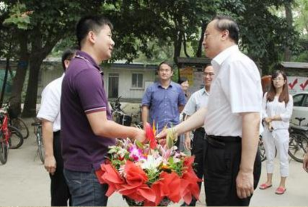2012 年 9 月 1 日北京大学党委书记朱善璐看望朴世龙教授(左)