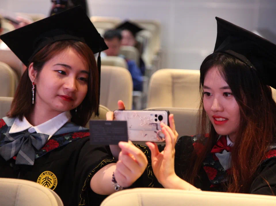 典礼开始前,师生共同观看了学院精心拍摄的毕业纪念短片。毕业生们在光影交错之间、通过数字信号的传递,找回了自己在学校度过的那些美好回忆和画面,只要想念还在,毕业就不算分别。