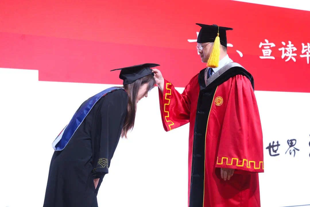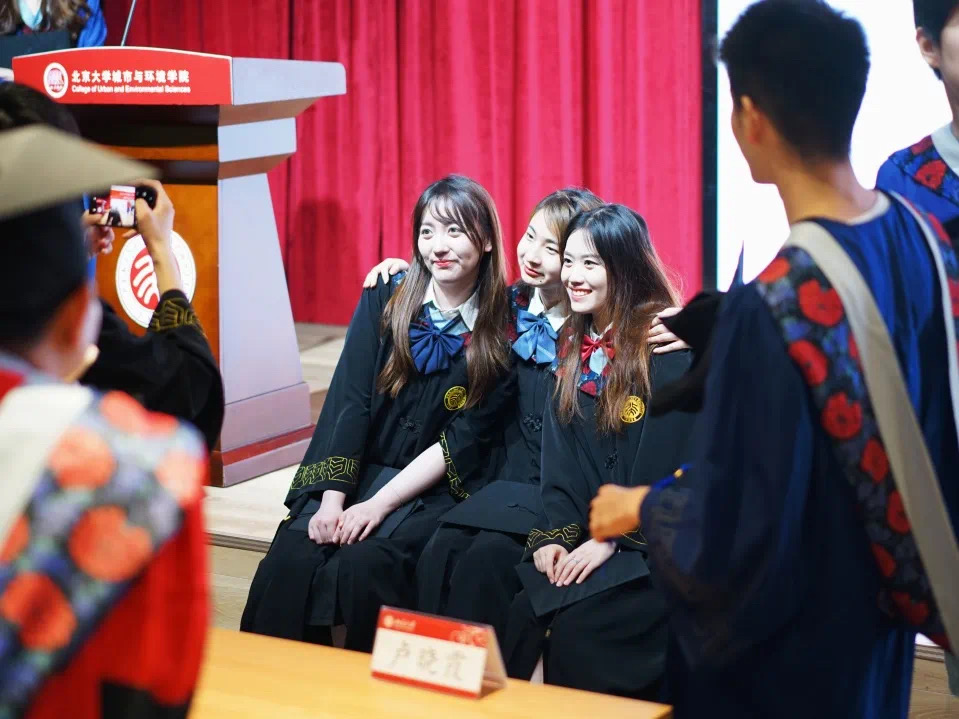 毕业典礼在师生齐唱《燕园情》的歌声中圆满结束。直至最后一个音符结束,每一个人仍沉浸在旋律之中,情绪久久难以平复。相信学院毕业生们会一直保持那一份热爱,带着北大伟德人脚踏实地、勇敢攀登的精神,在学院老师们的殷切期盼中,奔赴下一场山海。愿此去前程似锦,再相逢赤忱如故。