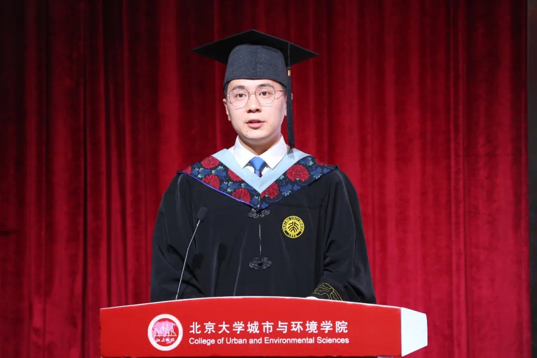 2018级人文地理与城乡规划专业的徐?作为本科毕业生代表发言。他分享了内心的三点感受:青衿之志,履践致远;立已达人,兼济天下;结草衔环,饮水思源。来回顾了自己的本科生活,并表达了对学校、学院的老师、同学和家长以及后勤保障人员的感谢。