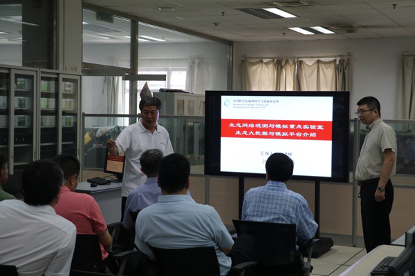 当天下午基金委领导及专家组在项目组的陪同下前往中国科学院植物研究所和中国科学院地理科学与资源研究所进行了实地调研。在中国科学院植物研究所调研参观了植被与环境变化国家重点实验室分析测试中心和自然生态系统植物与土壤样品库,植物所汪小全所长、种康书记对相关科研工作的基础条件进行了介绍。随后前往中国科学院地理科学与资源研究所实地调研CERN 综合中心及数据中心和生态系统网络观测与模拟院重点实验室理化测试中心。